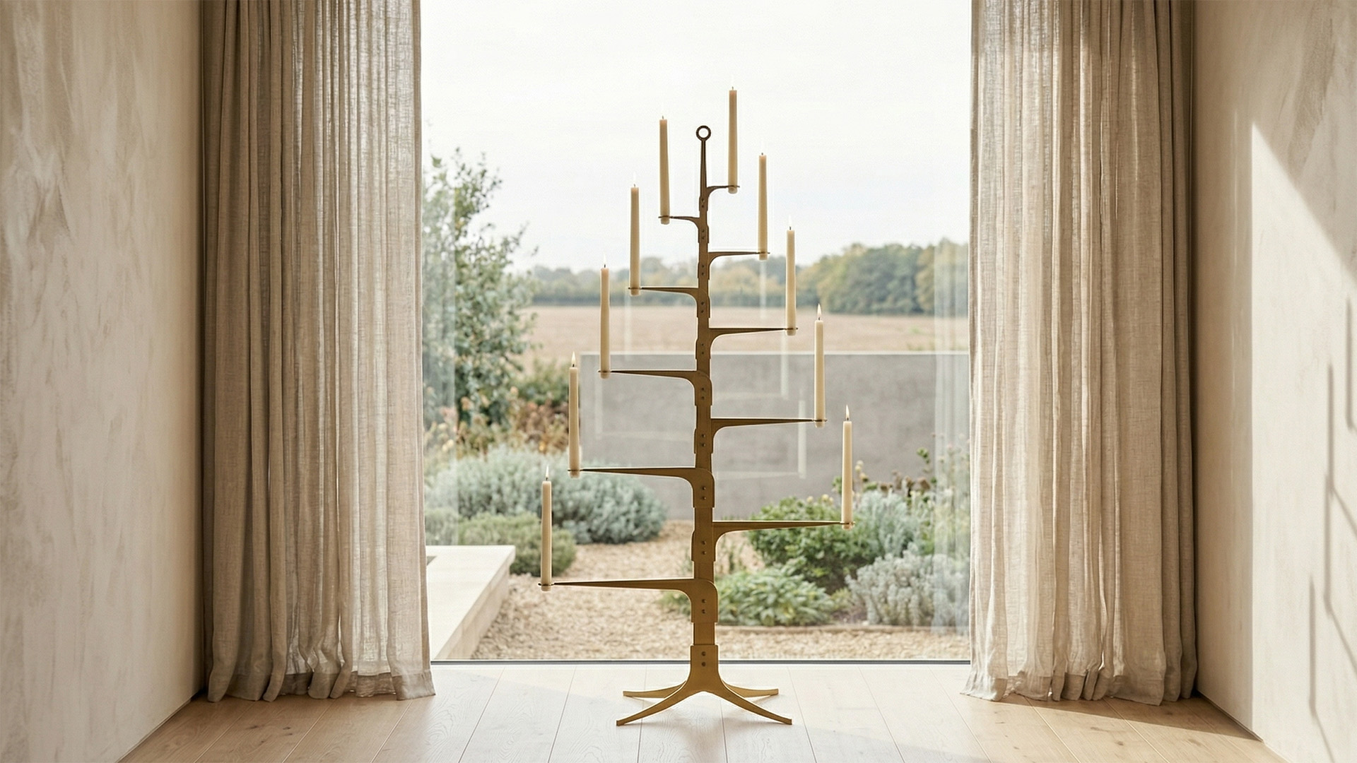 Deze kandelaar neemt ondanks zijn hoogte weinig ruimte in en u plaatst deze gemakkelijk voor een raam, tussen de gordijnen. De kandelaar is een kunstobject, ontworpen voor ‘Masterly’ interior design welke het gehele jaar door sfeer in huis brengt.